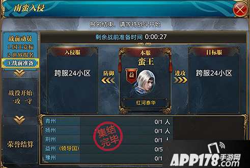 南蛮入侵玩法指玩家可以入侵其他的服,入侵者抢夺各国的乐师和宝藏,以此得到南蛮武勋。玩家需要先参加报名,战力越高越有机会,报名失败的玩家只要在本服做好防守入侵的外服南蛮,也可以获得银子和南蛮武勋的奖励。