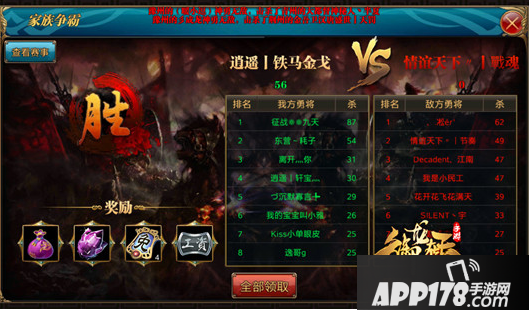 每人初始获得30积分,死一次扣一分,个人积分为0会被传送出战场。比赛15分钟后结束,本家族剩余积分多的一方获胜。