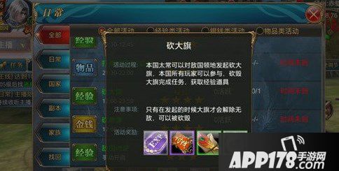 本国所有的玩家都可以通过日常任务面板来接取“砍大旗”任务。