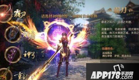 目前里面职业为4个分别是:霸刀、羽扇、神弓、重剑,其中霸刀和重剑为近战,羽扇和神弓为远攻。霸刀属于近战物理系,以关羽为原型设计的冲锋型战士,拥有极高群体伤害,擅长冲锋陷阵击垮敌方阵型,其标志性技能是赤兔飞奔和力劈华山。