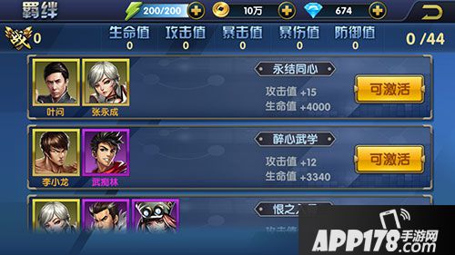游戏中的宗师不仅武艺高强,更是设计了情感部分,让玩家在游戏中也能体会大师的情感。游戏中主要角色之间都会有羁绊的设置,玩家可以激活羁绊,如叶问和张永成的羁绊“永结同心”,激活之后会增加人物的攻击和生命值,助力玩家战斗!