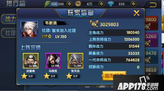 二、战力榜是统计全服前50名战力最高的玩家,而在排行榜旁边的人物框只能显示战力是第一名的玩家信息。想要知道这些玩家的具体信息,可以点击排行榜查看并且可以向他们申请加为好友。