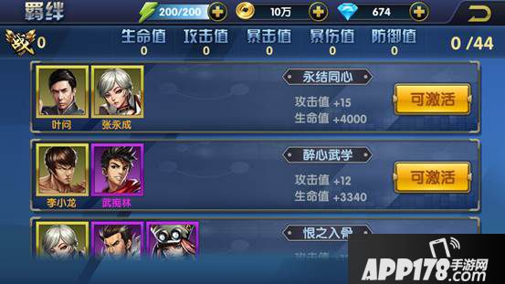 在这里可以查看可激活和不能激活的羁绊属性及数量,激活羁绊可增加相应数值属性及单独的战力。