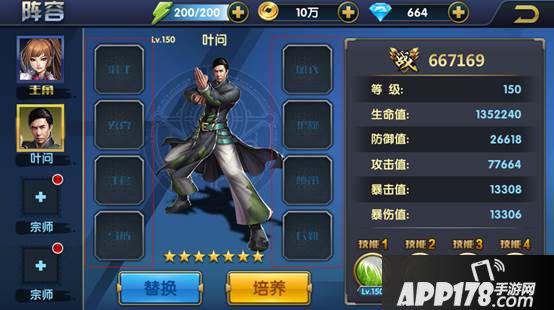 一、阵容功能是集宗师上阵、宗师培养、装备穿戴、装备提升和各个宗师战力、属性和技能查看于一身的综合性功能页。在阵容中包含图鉴、培养、装备三大系统跳转链接,简化了玩家各项操作节约了宗师、装备的成长操作时间。提高了玩家战斗体验时间。