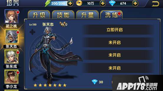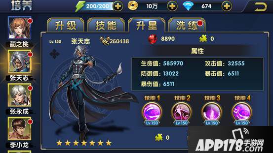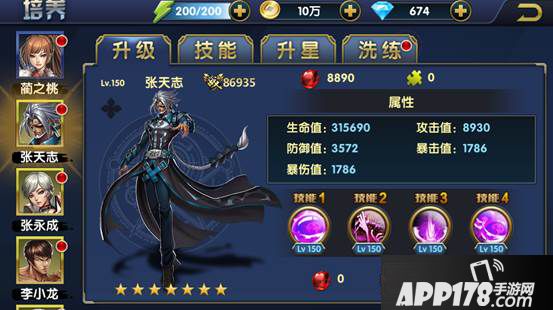 培养功能包含“升级”、“技能”、“升星”和“洗炼”宗师四大养成体系。