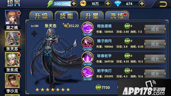 成长只是给单个技能升级,一键成长是系统自动给当前主角或宗师4个技能同时升级。