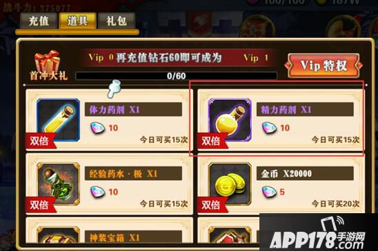 4、商城购买。在商城可以花费钻石获取精力药剂。