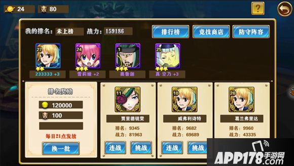 战胜后可以获得竞技币和大量的钻石,并提升排名。
