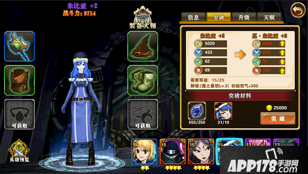点开魔导士界面,选择其中一个魔导士,可以看到【突破】按钮