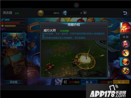 【威行火符】2技能。燕赤霞打开法宝箱,飞出一道炎符,对前方直线范围内的敌人造成魔法伤害。若炎符穿过残留在地上的破魔刺,则破魔刺会爆炸,对范围内敌人造成魔法伤害并晕眩0.5秒。