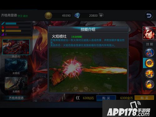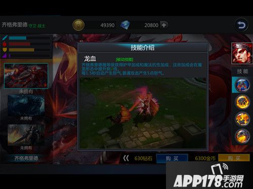 技能解析:被动技能【龙血】为齐格弗里德提供了强大的生存能力,等级越高被动效果越强。可以利用【火焰喷吐】消耗对手,并且附加持续5秒的额外魔法伤害。【地狱洗礼】看似伤害不高,但它是按秒计算的,而且还会增加移动速度,每次物理攻击将延长该技能的持续时间,所以当我们贴身攻击的时候开启此技能,伤害简直不要不要的。大招【巨龙化形】让齐格弗里德变身成龙,并且有击飞效果,释放条件是怒气值满,所以掌握释放时机很重要。