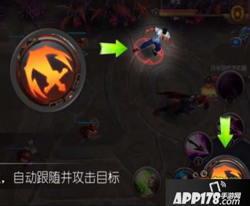点击选中一个目标后点击这个攻击按钮,英雄会自动跟随并攻击。