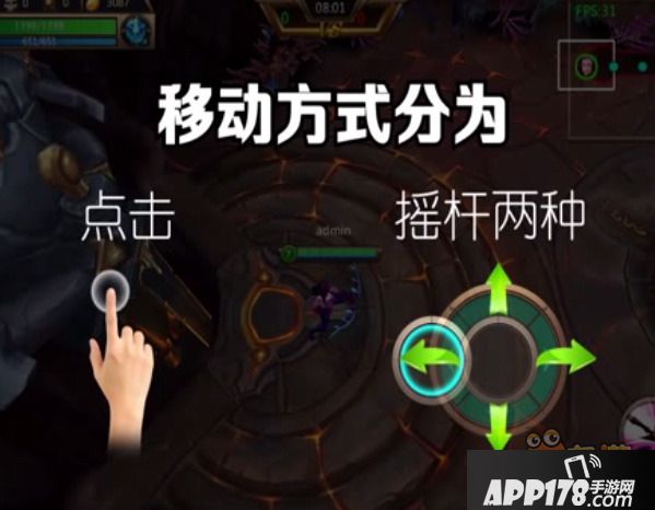 移动方式分为两种,一种是点击,可以点击地图任意地方,英雄会自动移动到点击位置。另一种是摇杆,手指按住左下方移动,英雄会根据手指移动的方向进行移动。