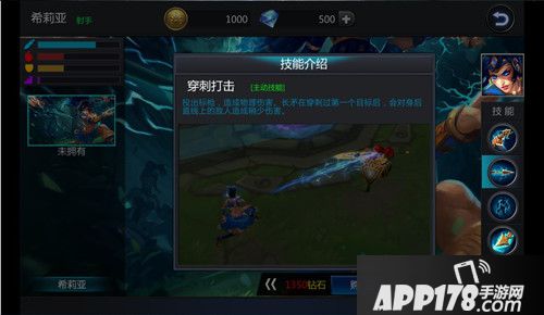 穿刺打击:投出标枪,造成物理伤害。长矛在穿刺过第一个目标后,会对身后直线上的敌人造成稍少伤害。