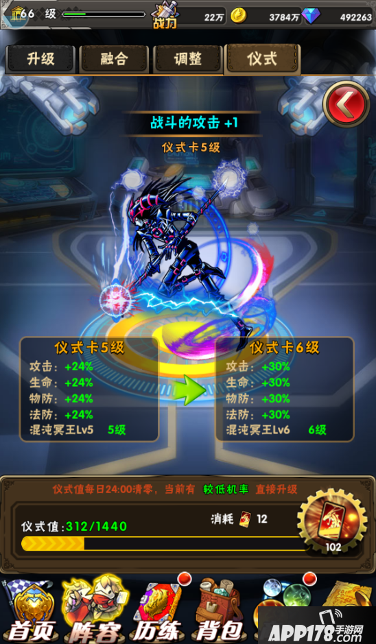 消耗仪式会增加仪式值,仪式值越高,升级成功的几率越大。若仪式值达到满值后则必然升级成功,但是需要注意的一点是,仪式值每日24:00会清零,所以各位要算好需要多少仪式再一次性的升级完成,以免造成浪费哦!