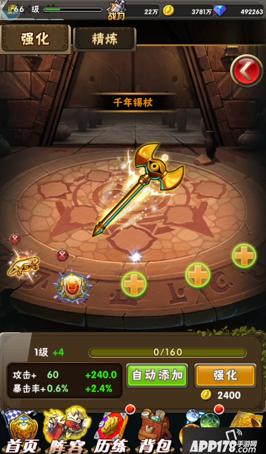- 在游戏主界面,点击“宝物”,选择点击所需强化或精炼的宝物,下方弹出“强化”与“精炼”。进入对应界面操作即可。