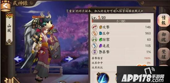 @jwe:阴阳师山風是个强力的单体输出SSR式神,100%暴击的大招, 可以考虑高爆伤高攻击高速度,抵抗有没有我觉得都无所谓。