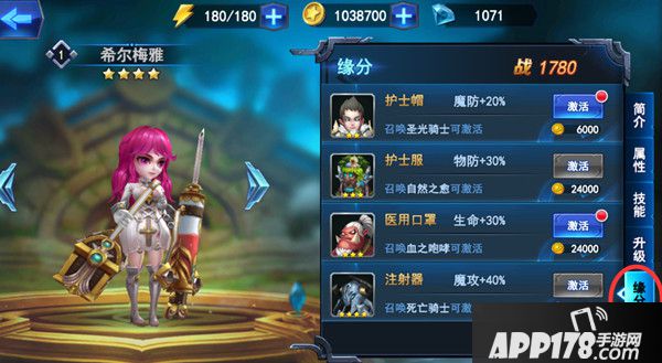 激活相应的缘分时可以让希尔梅雅的各个属性得以提升,魔抗物防以及生命值的提升让作为一个奶妈的希尔梅雅来说无疑是极大的增强了她的生存能力~