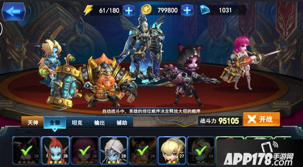 《勇者打不死》阵容位置分为:天神、坦克、物理输出、法术输出、奶妈