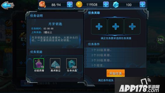 任务分为白、绿、蓝、紫4种品质,品质越高,奖励也就越好。当然对于能派遣的英雄的要求也更为苛刻。