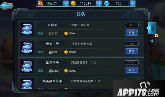 主线任务通常比每日任务获得的奖励更多,主线任务在当面某个阶段只会显示部分任务,随着等级和副本进度的提升,逐渐开启支线任务。当你完成任务后,可根据自身升级经验需求合理选择领奖时间,以免体力上限而错失奖励获得。