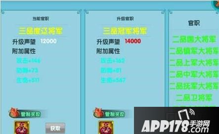 除了大司马意外,玩家只要随着声望提升,就可以自动提升官职。每提升一次官职,都可以获得丰厚奖励!各位英雄们,还在等什么呢,赶快上阵杀敌吧!