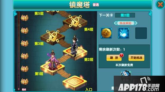 玩家达到26级,则自动开启镇魔塔功能,镇魔塔分3个难度,玩家需要打通一个难度才可开启下个难度,选择难度后,玩家需击败每层的NPC后,便挑战下一层。每层奖励星尘和聚星宝石等道具。每通过10层可获得额外奖励史诗万能碎片一个。想要拥有华丽且强力的翅膀及高阶项链,就在镇魔塔,这里有你想要的。云歌还每日赠送大家一次刷新镇魔塔的机会,而且玩家只需要点击自动爬塔就可以了,简单方便。