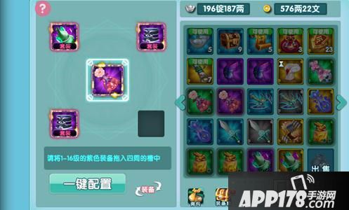 玩家点击功能栏的如意瓶即可参与此玩法,首先需要将想要进行升阶的装备(道具)拖动到中间的方格,然后点击一键配置,系统会自动将同品阶的4个没用的装备(道具)配置上去,然后在点击开始合成即可将要要提升的装备(道具)升级到更高的品阶.