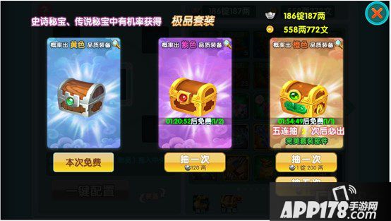 装备的级别分别是,白,蓝,黄,绿,紫,橙。装备的获得途径:我们平时挂机,或者副本任务打到的散件均可合成,而合成的成本是5件同样颜色的合成一件更高级的以此类推……