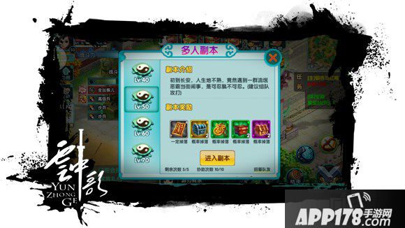 多人副本的难度不言而喻,50级开始,玩家就必须和小伙伴们组队前往,才能顺利通关。要集齐小伙伴才能通关的挑战,奖励同样非常诱人:英雄帖、银两箱、刷镖令等。都是《云中歌》游戏中每日必做的所需物品。