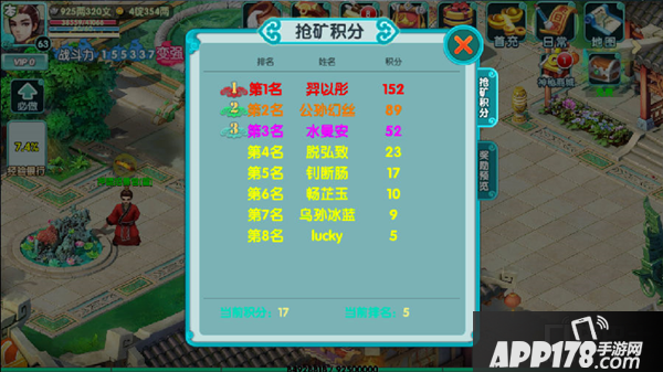 玩家还可以在抢矿积分榜查看自己的积分和本期的礼物。