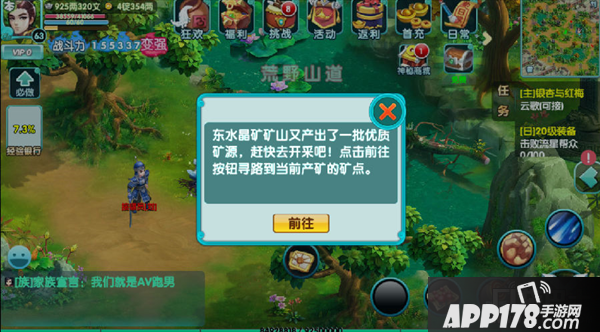 每次玩家进入游戏,如果有矿刷新,系统便会给每位玩家一封信,打开信后,点击前往便可自动去到矿点。