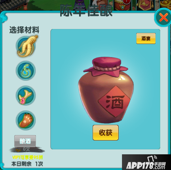 喝酒是游戏中升级速度最快的一种,玩家可以在酒翁红星前酿酒、喝酒。每个玩家每天可以喝3次酒、酿3次酒。每次酿酒需要话费一些银子,银子花得越多酒的质量也就越高,同时酿酒也需要花费一些时间来完成。酿出的酒分白、蓝、黄、绿四等,越贵的酒自然加的经验也越多。