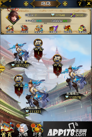 玩家每日可在擂台免费挑战5次,按擂台排名玩家可获得大量的元宝奖励与声望奖励.