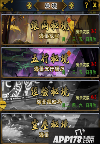 《云中歌2》中每天会开启2个秘境,每个秘境都有三次挑战机会。秘境中有着大量日常所需的资源。千万别错过。不同的秘境根据时间而定,这一点需要大家注意一下。