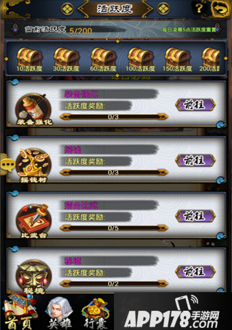 每日必做内有:每日签到、每日福利、活跃度、完成这些任务以后,会有大量的元宝奖励与资源奖励哦.