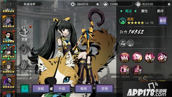 苗苗,处于第二梯队出场英雄,连招简单,霸体技能CD短,攻击频率把握好,技能可以循环释放。因为是医者属性,生存能力弱,虽带有回血和减伤技能,但是在BOSS战斗中还是较难存活的,随时注意血量,及时切换出战英雄。