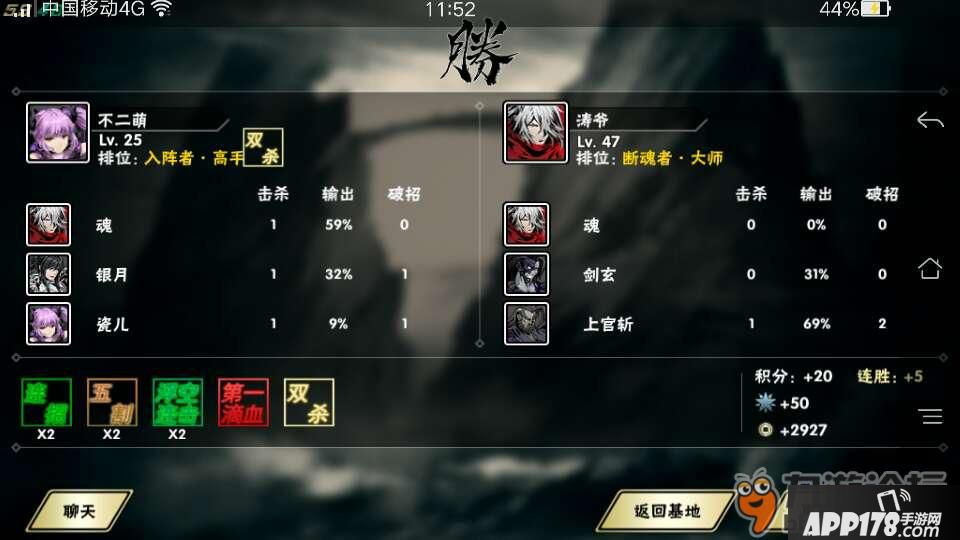 好,接下来进入正题。pvp打了几场都是完胜,然后直接给我匹配个断魂大师的对手,说好的匹配战力差不多的呢,我才是个入阵者,差距也太大了吧,但是还不能不打,直接放弃不是我风格。然后就打赢了(ಡωಡ)hiahiahia