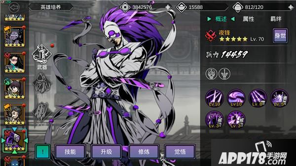 他天赋技能是被攻击获得1%的杀气虽然有点鸡肋但是配合上杀意刻印+16% 这个最值!20%的不要买太不值了.扬长避短把奥义技能提升发挥到淋漓尽致,奥义是他的点睛之笔,需要靠自己操作不是累赘,这样一来至少你不会空大,夜峰本来技能伤害就不俗,绝对不低于其他英雄奥义伤害.再配合奥义刻印,奥义后攻击提升30%,本来就是30%,再搭配上伤害+20%的刻印,那样你的吸血15%几乎能够翻倍。心法就比较随便了,可以选脱身加血,也可以选被控制获得杀气。