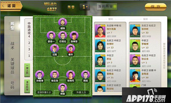 现在请各位经理进入阵型界面,你们会发现《中超风云》的阵型设置不仅包括普通的阵型以及关键球员设置,还可以有一个特色系统----球衣号码。