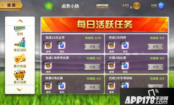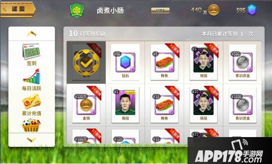 各位经理请进入活动界面,每天管理俱乐部的第一件事就是打卡签到啦,而且还能拿到奖励哦,每天奖励各不相同,VIP玩家还有额外奖励哦~