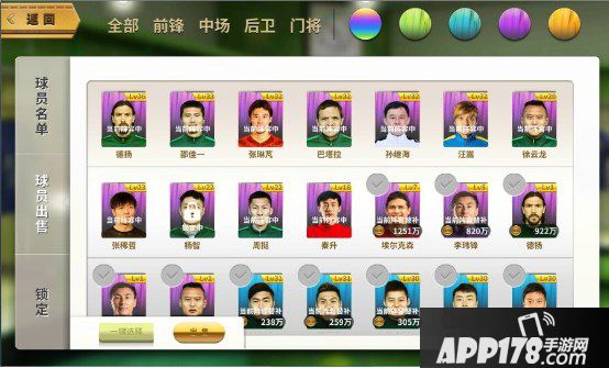 如果您有不想卖出的球员,还可以进行球员锁定,单击不想卖出的球员,一把金锁就出现在球员左侧,他就永远是你的人啦!同样的,再单击一下已锁定球员,刷的一下,他就被解锁了!是的,经理人就是这么酷,球员太多实在好难选择!