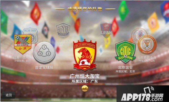 现在介绍下球队选择,在《中超风云》游戏中可以选择2015赛季中超全部16支球队作为自己的主队,豪气干云的广州恒大,永争第一的北京国安,王者之风的山东鲁能,锐意进取的上海上港……而对于心中尚存年少时期甲A记忆的你来说,还可以选择率领当年的全兴、实德这些已经消失在历史舞台中的名字卷土重来,率领昔日豪强重返巅峰!四川雄起!八冠王实德!怎么样!而如果恰巧你的家乡没有中超球队的话,进入“自定义球队”功能建立一支吧!在游戏世界里为家乡打造一支球队也是很有成就感的!