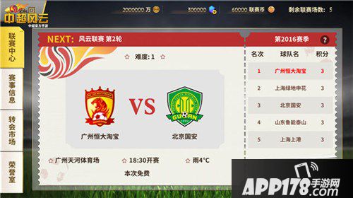 《中超风云》手游的风云联赛会在玩家等级达到10级时自动开放,该联赛的所有赛程和规则均是以真实的中超联赛为蓝本进行设计的。每日,每位玩家最多可参与5场风云联赛,每次获得比赛胜利,均可获得联赛积分。最终联赛结束后,获得前3的队伍将有资格进入亚冠比赛,去争取更好成绩。