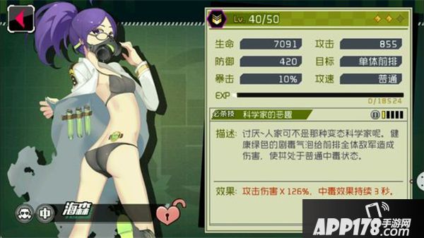 海森的最大优势就在于——点击就送没错,只要困难2,海森抱回家而且在前排先天不足的情况下,海森的高血量可以很好的充当第二道防线(矬子里拔大个吧)橙卡的嗨森可以同时毒到前中两排,紫卡只能毒第一排,不过对于五毒来说——对面的中排是什么重要等级推荐星级/等级 橙卡海森更大的作用是不带毒弹打生化人。不过五毒阵容并不是很在乎生化人。所以我更推荐能满破的紫卡——当然,如果你能二破以上橙卡更好不是嘛