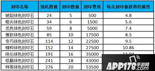 生命刻印:生命刻印就比较正常了,随着等级的提升每点刻印的属性越高。