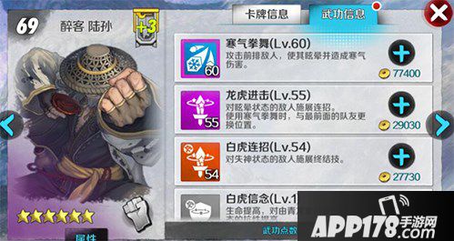 62级副本出的白虎堂陆孙,升星也挺方便,从技能来看,前排全体冰冻(减少内力回复)效果,加晕眩技能效果可以说是相当不错的,即使不能造成晕眩效果触发连招也能很好的限制敌方的开大。是一张非常好的战术卡,推荐练起来。