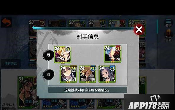 1、在战斗开始前,注意查看挑战对手的卡组配置情况。并根据对手的卡组配置,选择合适的出战卡组。比如对手可以攻击前方卡牌的对位不要放血少的卡牌,对位气功等输出型的卡牌可以安置刺客。有buff控制效果的卡牌,尽量放在前排,可以提前放出大招。
