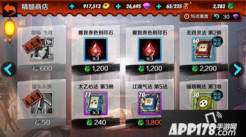 无双灵法、天地击法第一册能用160精髓买到强化必备购买。