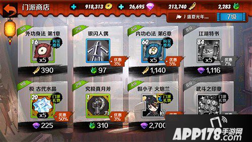 相比精髓商店,比武商店所需的硬币来源较多,江湖大战、门派大战、攻城、比武、武神之路等均可获得大量货币。